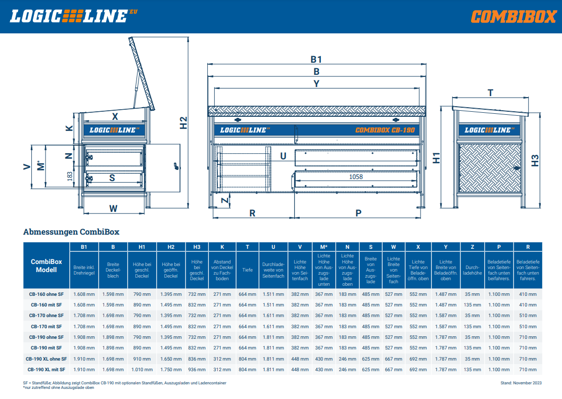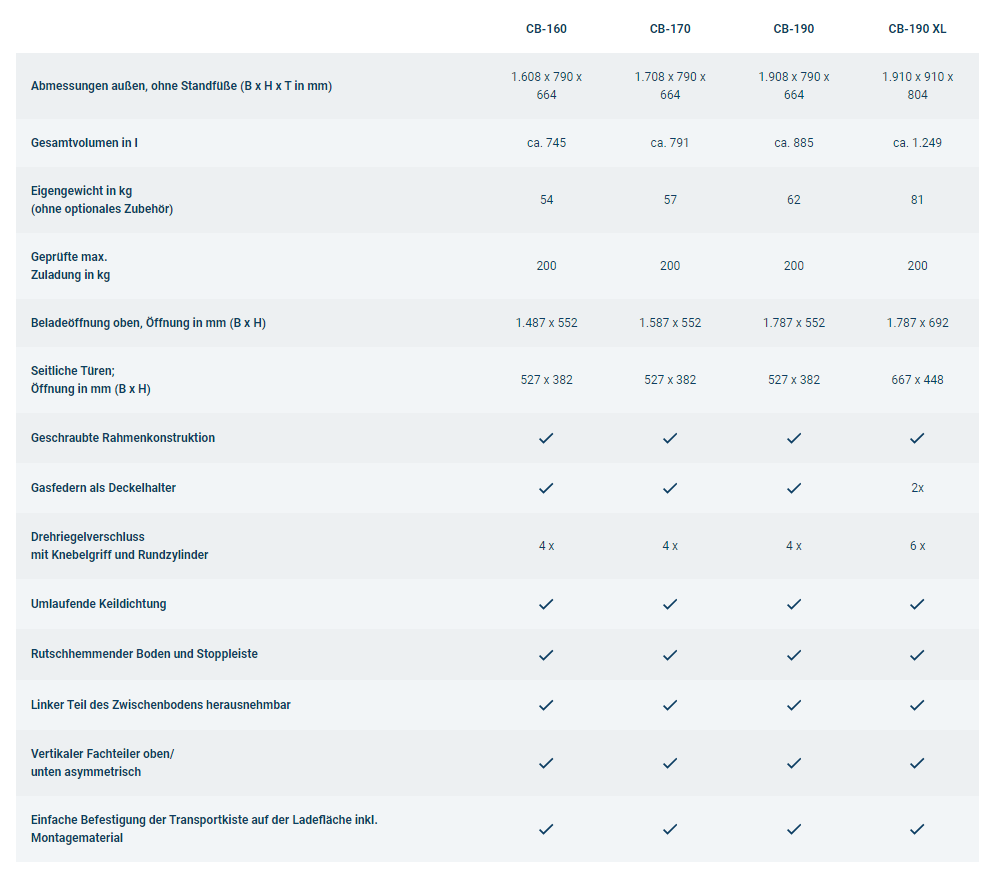 Combi Box CB-160 / CB-170 / CB-190 / CB-190XL ohne Standfüße
