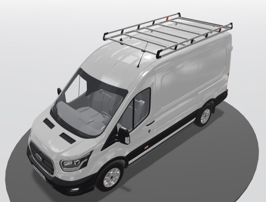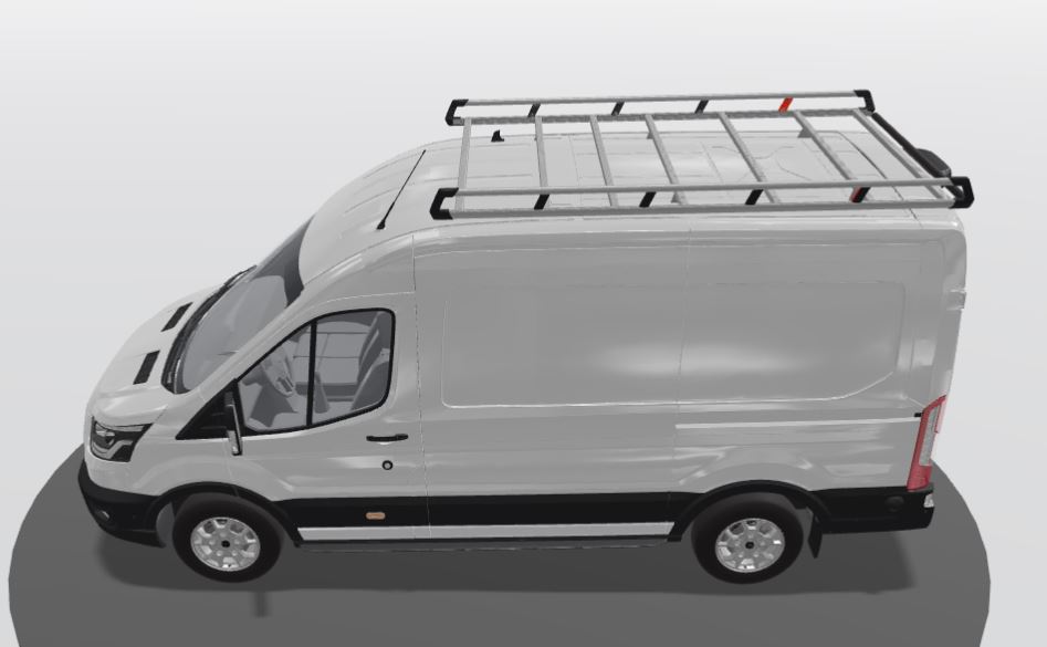Q-Tech Dachträger aus Aluminium Passend für: Ford Transit 2T L3H2 (ab 2015- ) mit Flügeltüren Fahrzeuglänge: 5.981 mm Fahrzeughöhe: 2.411 - 2.533 mm Radstand: 3.750 mm Abmessungen: 3.390 x 1.700 mm Inkl.: Laderolle