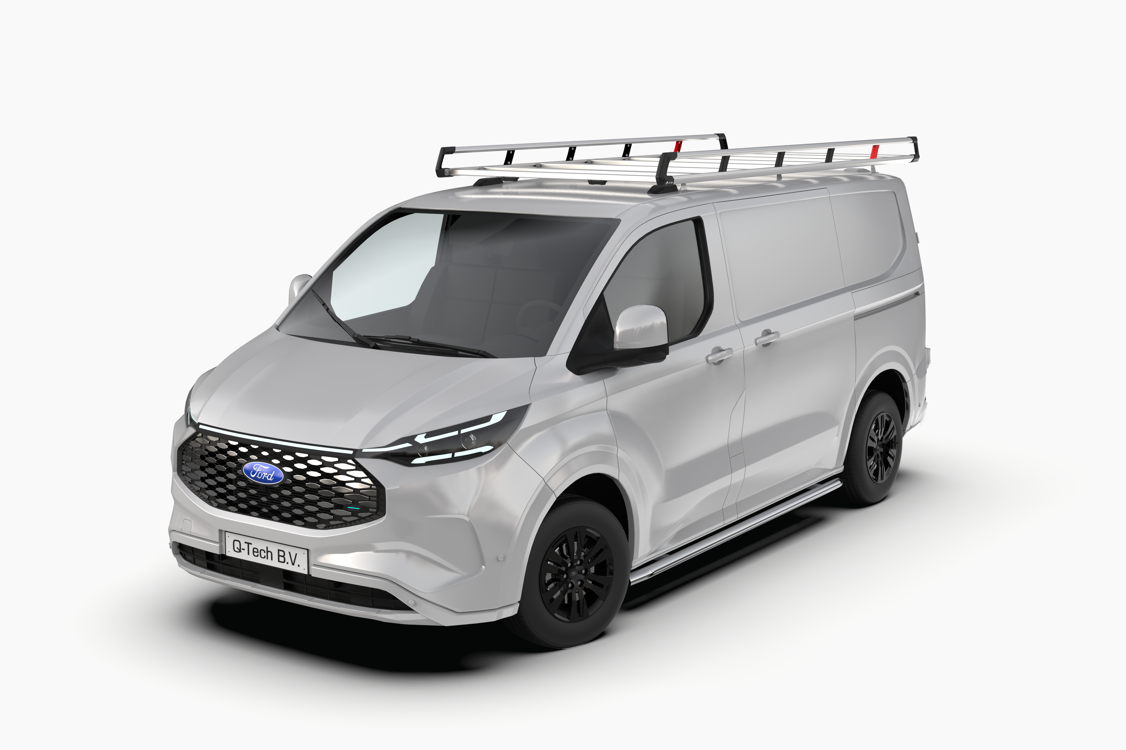 Q-Tech Dachträger aus Aluminium Passend für: Ford Transit Custom L2H1 (ab 10.2023- ) mit Heckklappe Fahrzeuglänge: 5.450 mm Fahrzeughöhe: 1.963 mm L2 = langer Radstand: 3.500 mm Inkl.: Laderolle