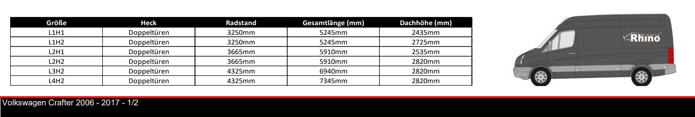 - VW Crafter alle Längen / Höhe: H1 und H2 ( 2006-2017 )