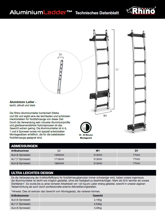 Rhino Heckleiter aus Aluminium für Renault Master H2 ( ab 2024 - )