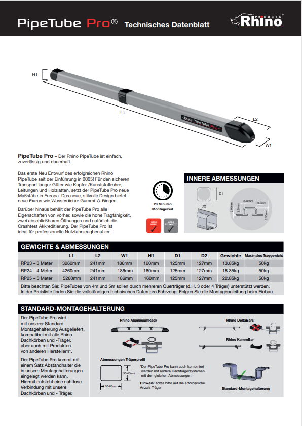 Rhino Porte Tube Pro Laderohr / Länge 5 Meter