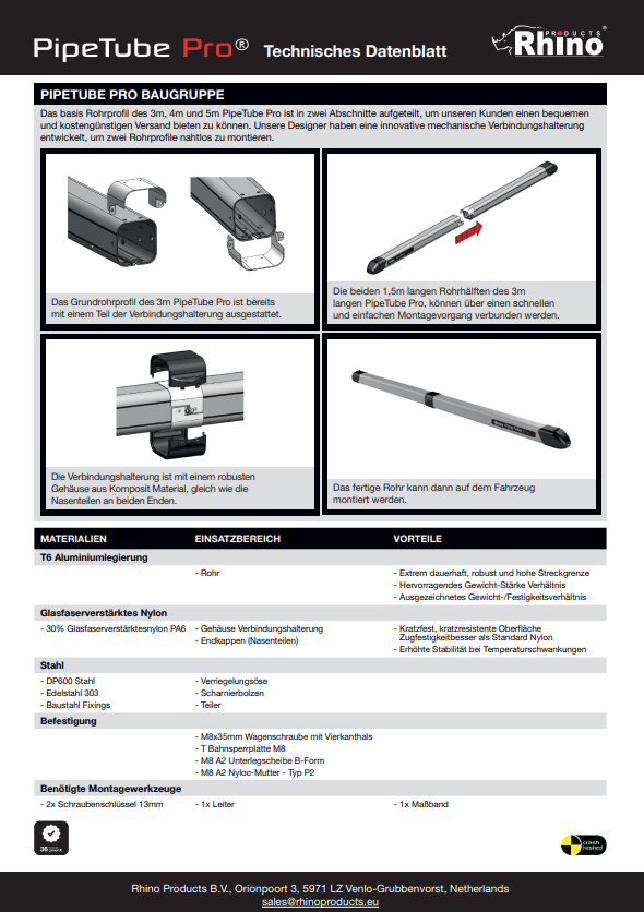 Startseite » Laderohr/Rohrträger » Rhino Laderohre / Rohrträger » Rhino Porte Tube Pro Laderohr / Länge 5 Meter