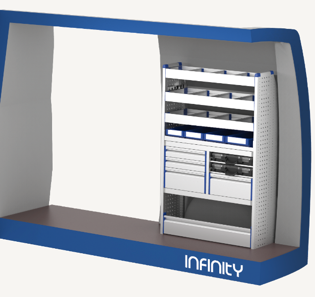 - Infinity wiegt bis zu 30% weniger als herkömmliche Fahrzeugeinrichtungen aus Stahlblech